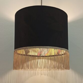 ΑΜΠΑΖΟΥΡ PANAMA DIGITAL PRINT – BLACK MYSTERY LAMPSHADE COLLECTION WITH BEIGE-GOLD FRINGING
