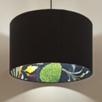 Η Abajur Mystery Lampshade Collection “ξεδιπλώνει” το “μυστηριώδες” σχέδιο του υφάσματος της εσωτερικής επένδυσης , που περιβάλλεται από πολυτελές ματ σατέν ντουσέζ ύφασμα στο εξωτερικό του αμπαζούρ.