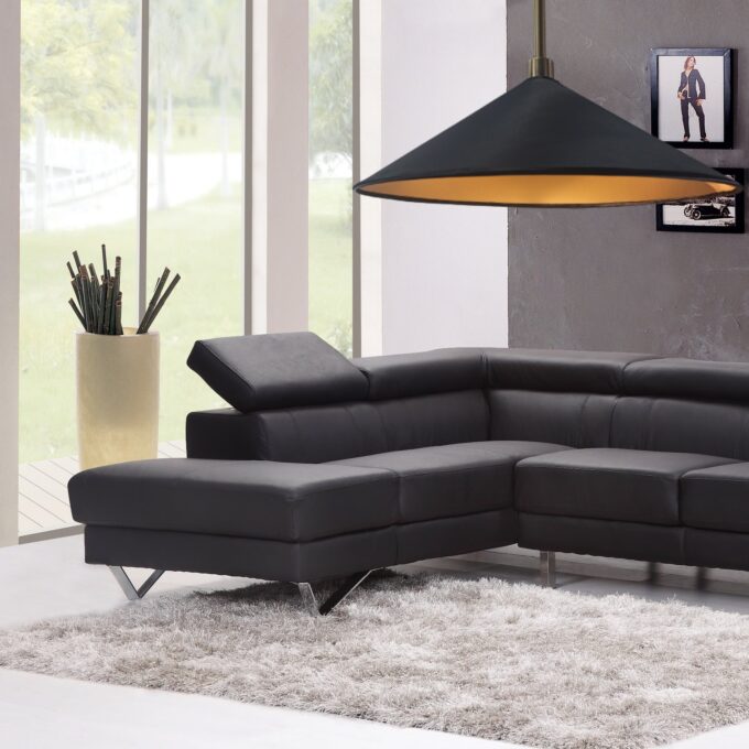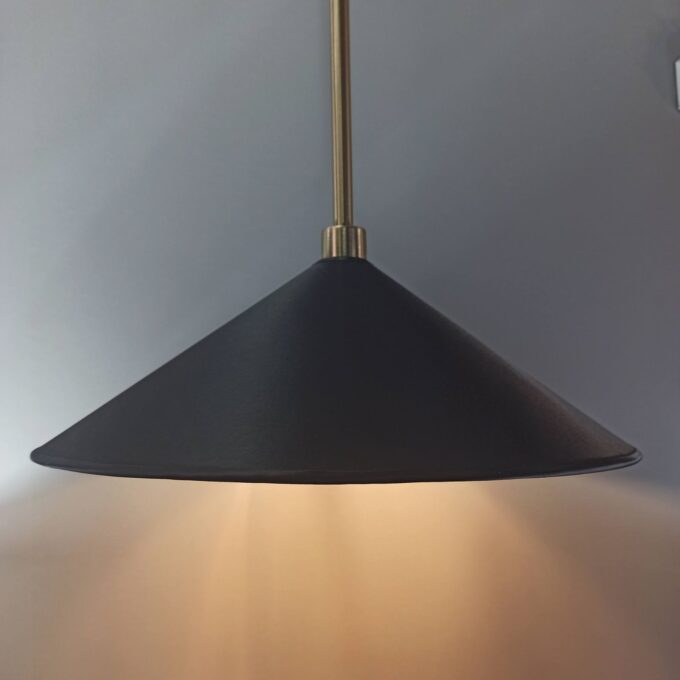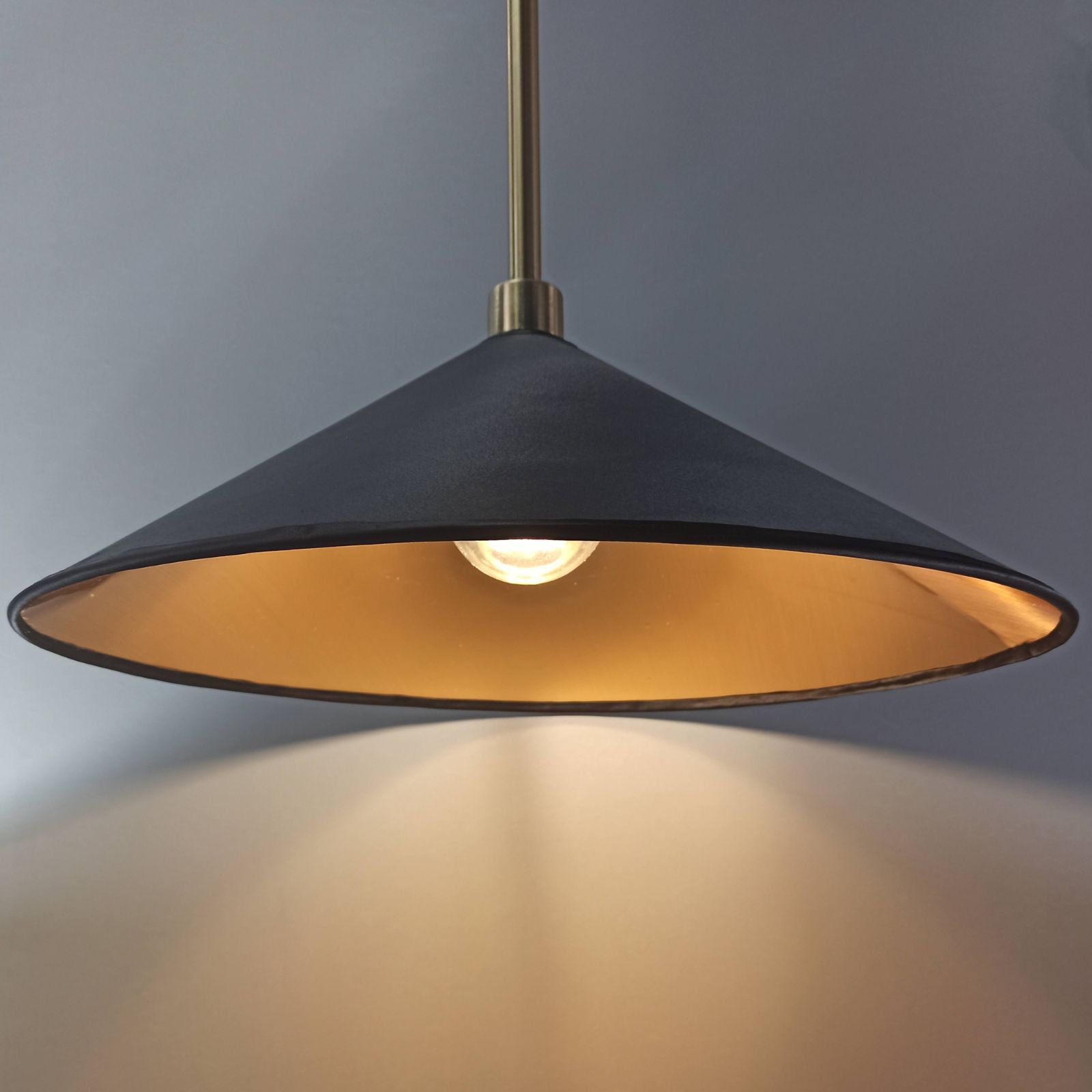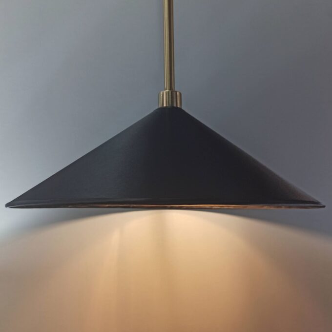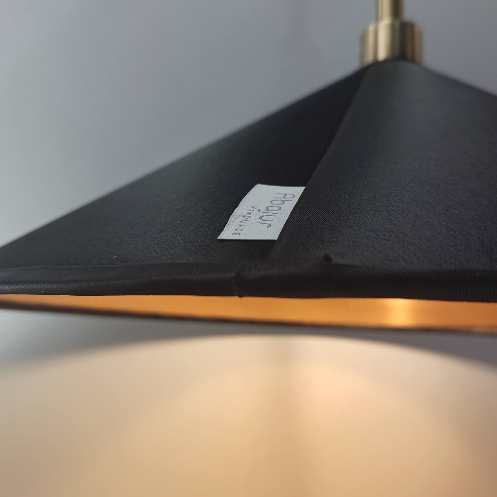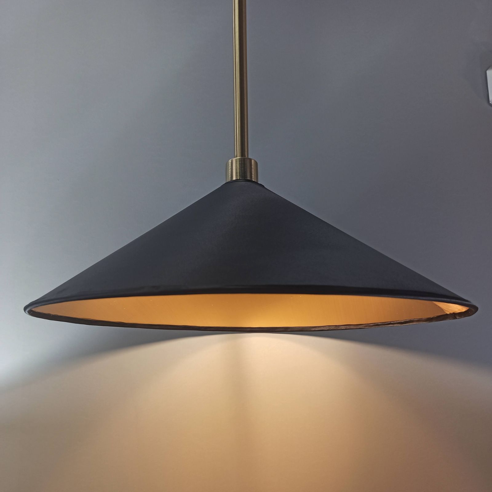 Αμπαζούρ κρεμαστό, κωνικό σκληρής επιφάνειας PVC με ύφασμα και εσωτερική επένδυση από χρυσό μεταλλιζέ βινύλιο.