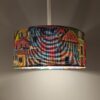 Αμπαζούρ κρεμαστό, κυλινδρικό σκληρής επιφάνειας PVC με ύφασμα.