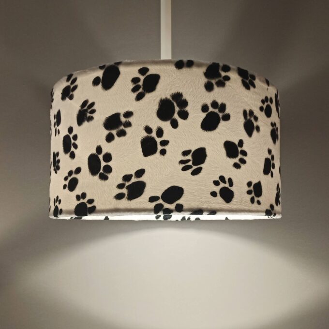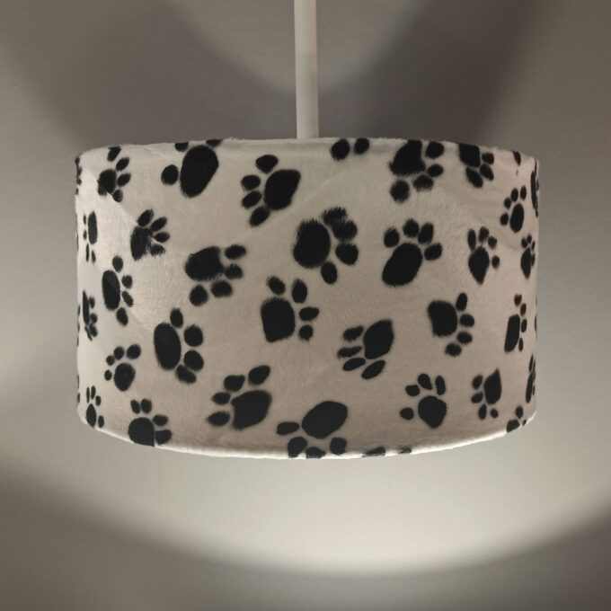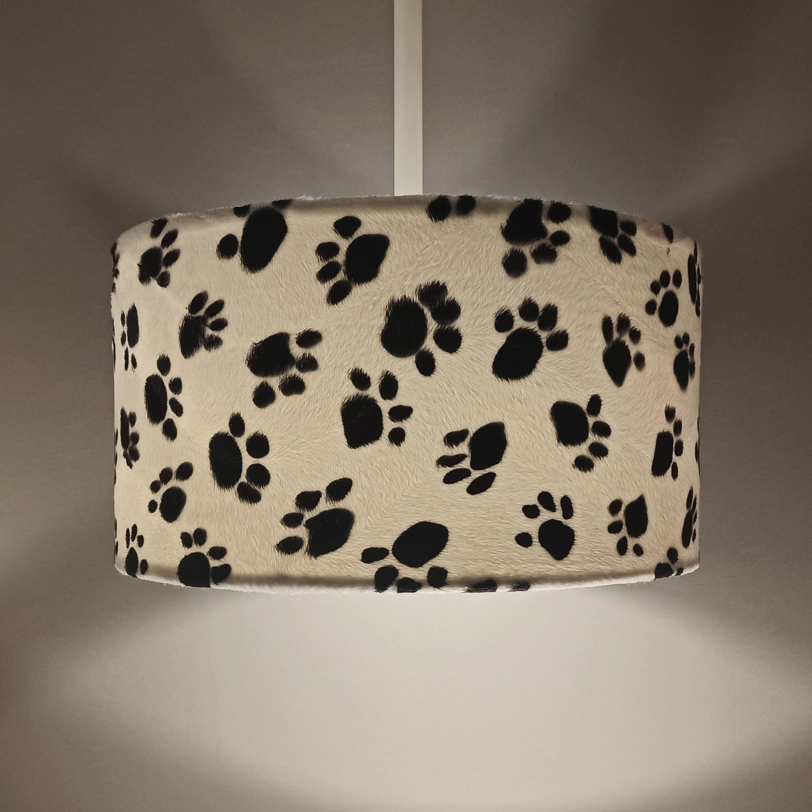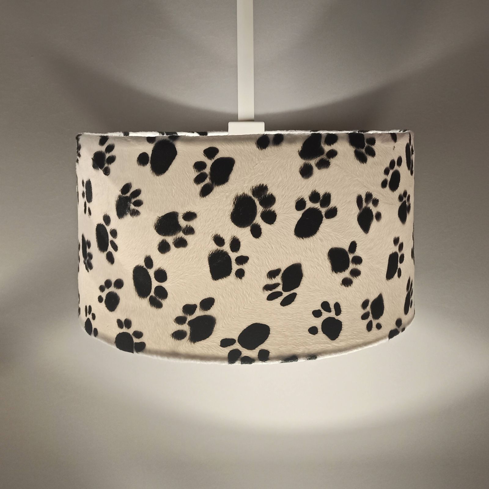 Αμπαζούρ κρεμαστό, κυλινδρικό σκληρής επιφάνειας PVC με ύφασμα τύπου γούνας animal print.